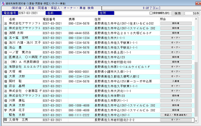 オーナー様・物件・部屋・契約などの登録された情報を管理し、検索も簡単に行えます。