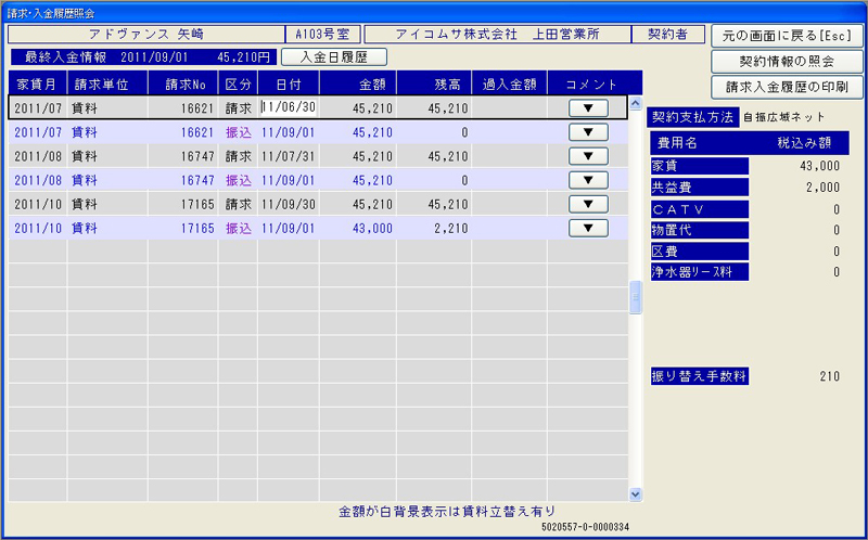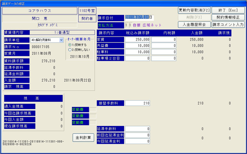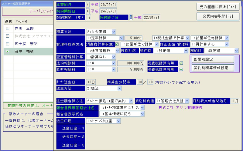 入居者様への賃料請求・入金・未入金などの管理。 オーナー様への立替や送金などの管理が行えます。